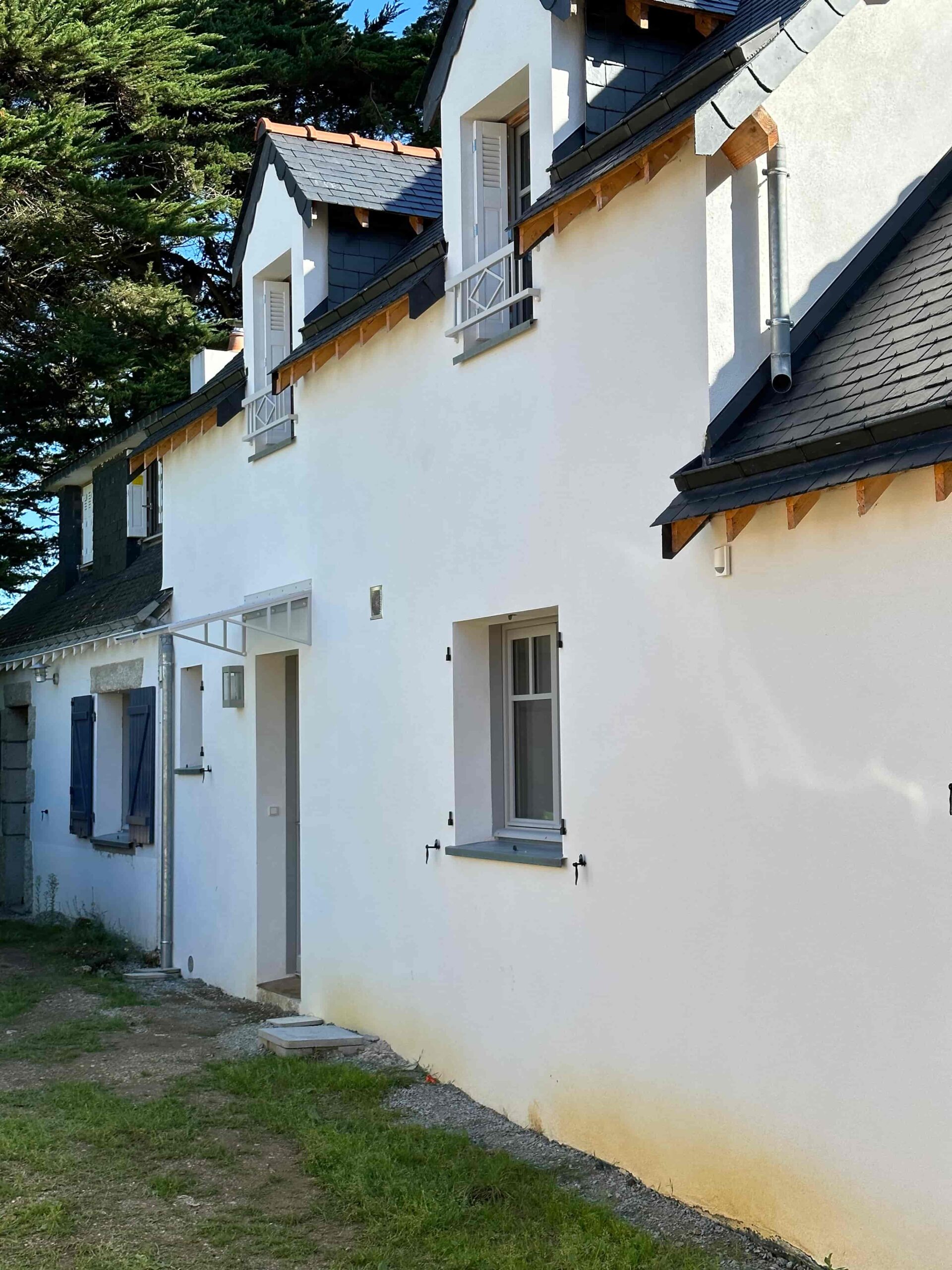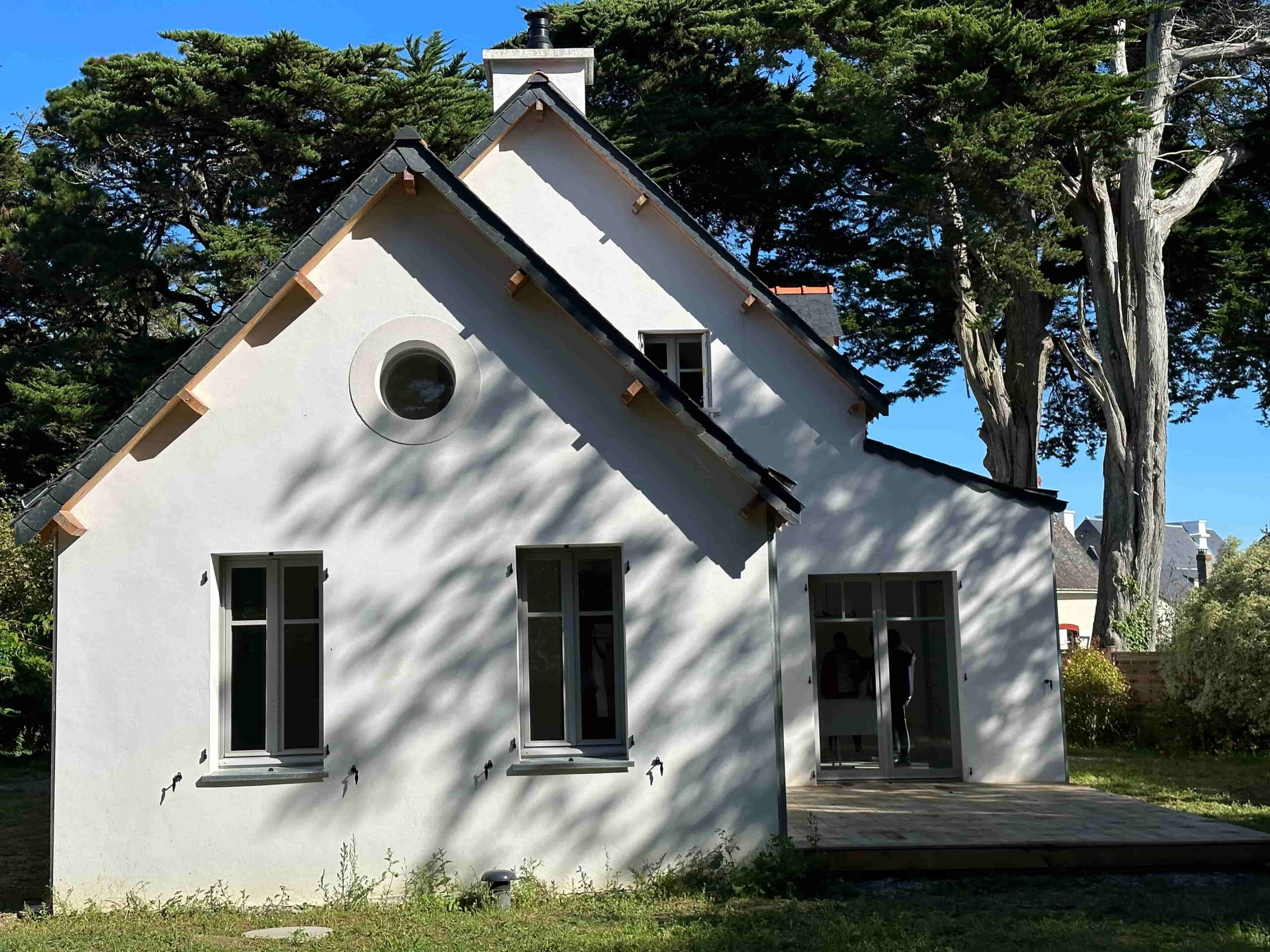 À Saint-Gildas-de-Rhuys, cette maison de 76 m² existants a fait l’objet d’un projet d’envergure livré en septembre 2023 : la création de 130 m² supplémentaires, portant la surface totale à 206 m².